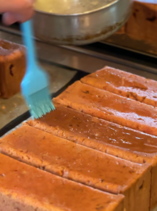 焼き上がったあと溶かしバターを塗り